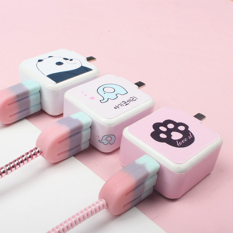 iphone苹果11 se2 8x xs max xr 7plus 6s手机充电器贴纸耳机数据线缠绕绳理护线器卡通可爱保护套防脏膜外壳